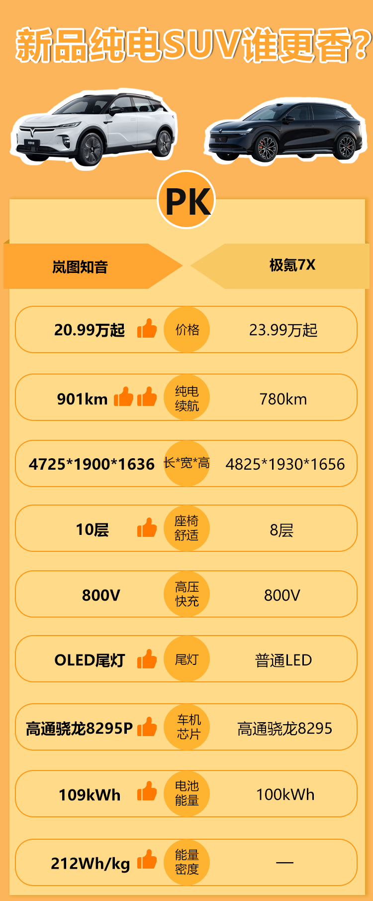 但8层的填充物总让人觉得少了那么一丢丢诚意。最后来看轮毂对比,岚图知音配了 20 英寸的低风阻轮毂,造型拉风不说,还节能省钱,出行成本直线下降,这波操作必须给满分!极氪7X在这方面就略显普通了,实在让人有点“词穷”,不知道该咋夸才好。