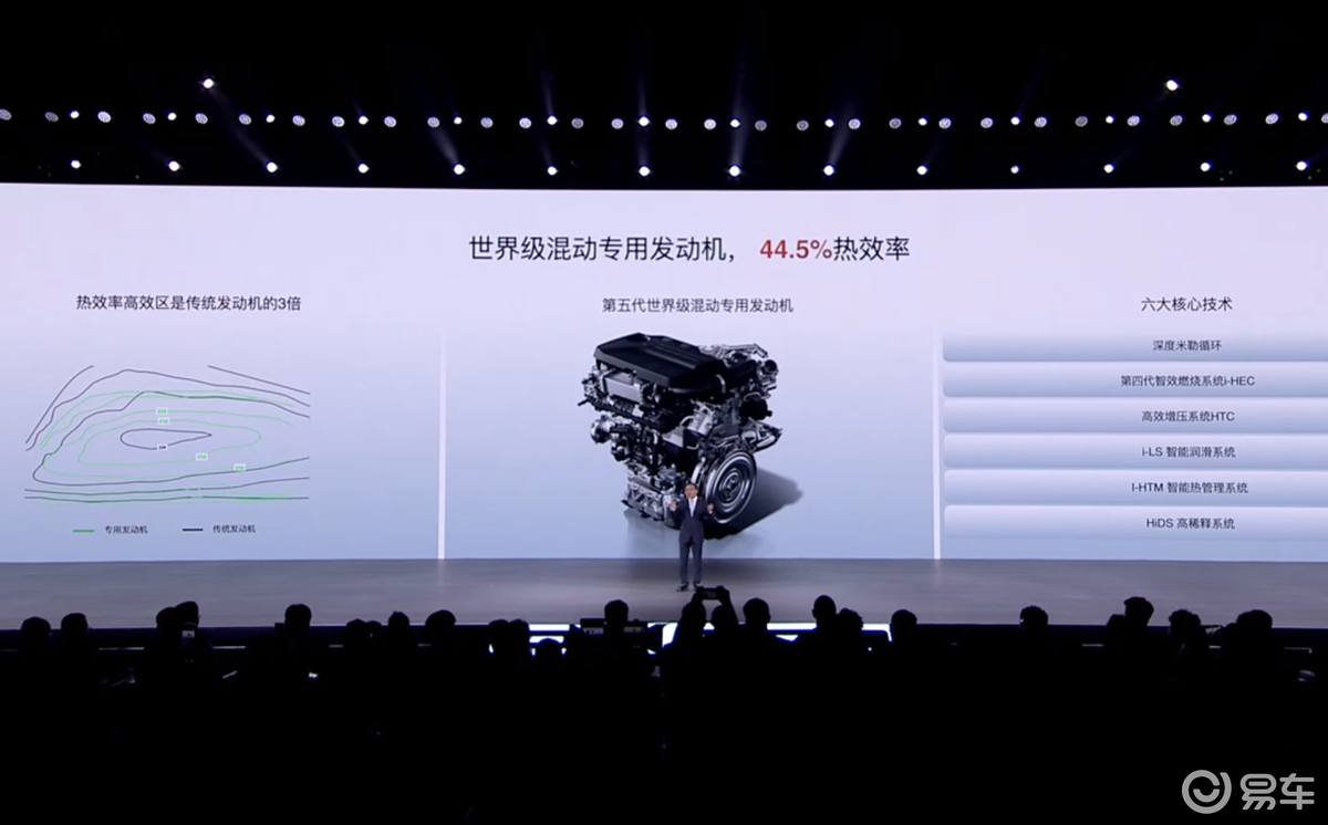 动力方面,揽月C-DM全系搭载全球首创的 C-DM四擎四驱超混技术,搭载热效率44.5%的1.5TGDI混动专用发动机与3挡DHT,发动机最大功率115kW,前双驱电机最大功率165kW,后桥电机最大功率175kW,系统综合功率达619Ps马力,系统综合扭矩到920N·m。 0-100km/h的加速时间5秒,WLTC工况下的馈电油耗则为6.88L/100km。