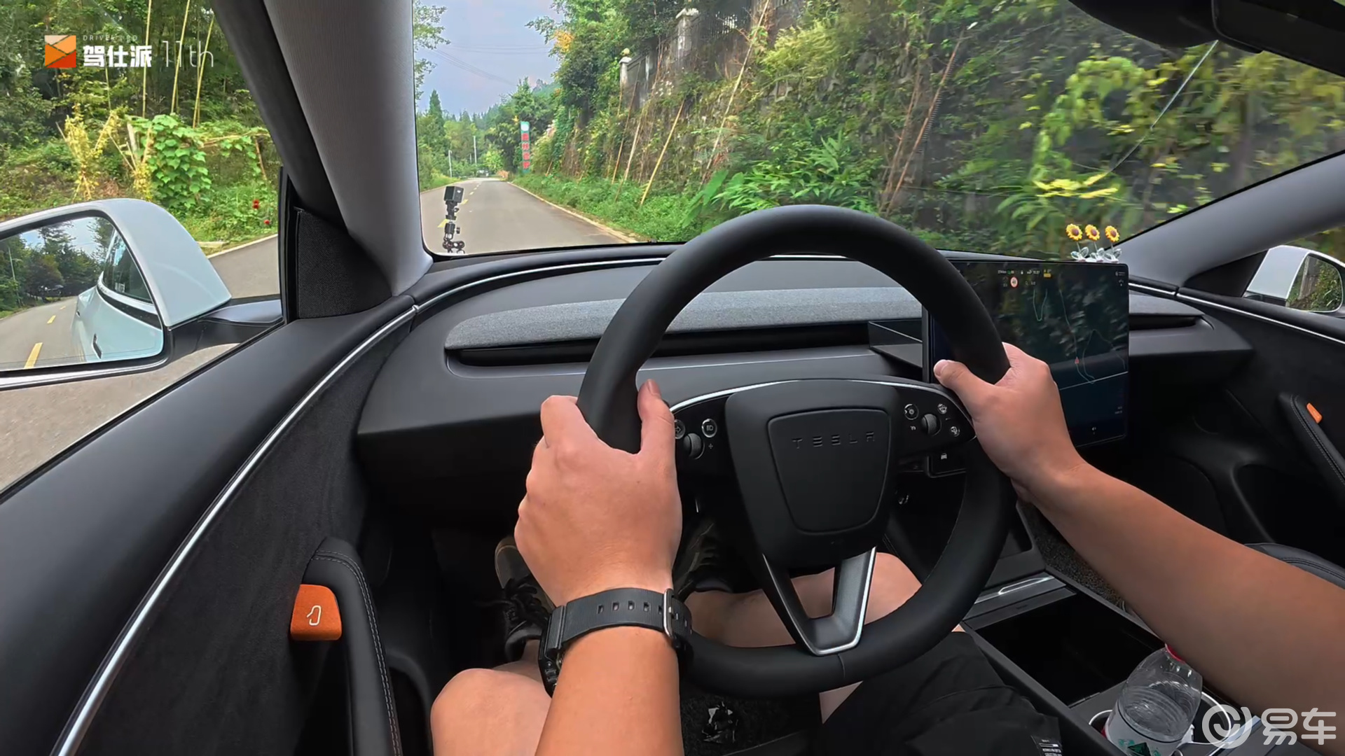 即便是标准模式下,Model 3的转向比还要比E5 Sportback更小,而且方向盘的整体的直径也小要一号,细碎震动像跑车一样传到手上,在山上反而强化的运动感,感官上的冲击更刺激。