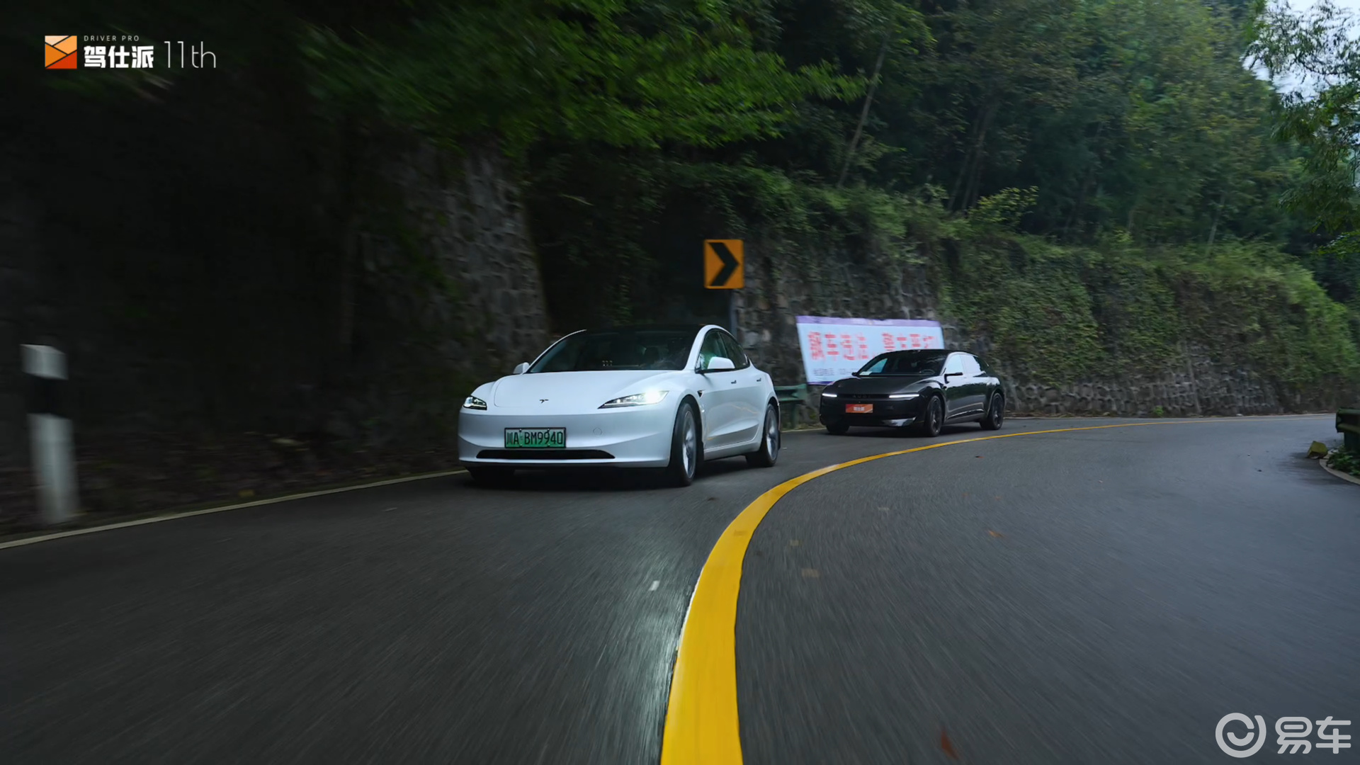 驾驶感受更直接更激进。非常贴地的低重心感,比E5 Sportback还要出色。只有1.82吨的车重也带来了过于强烈的路感,整个悬架轮胎的贴低感非常明显,在城区开着不够舒适,反而在山路上,是最合适Model 3的地方。