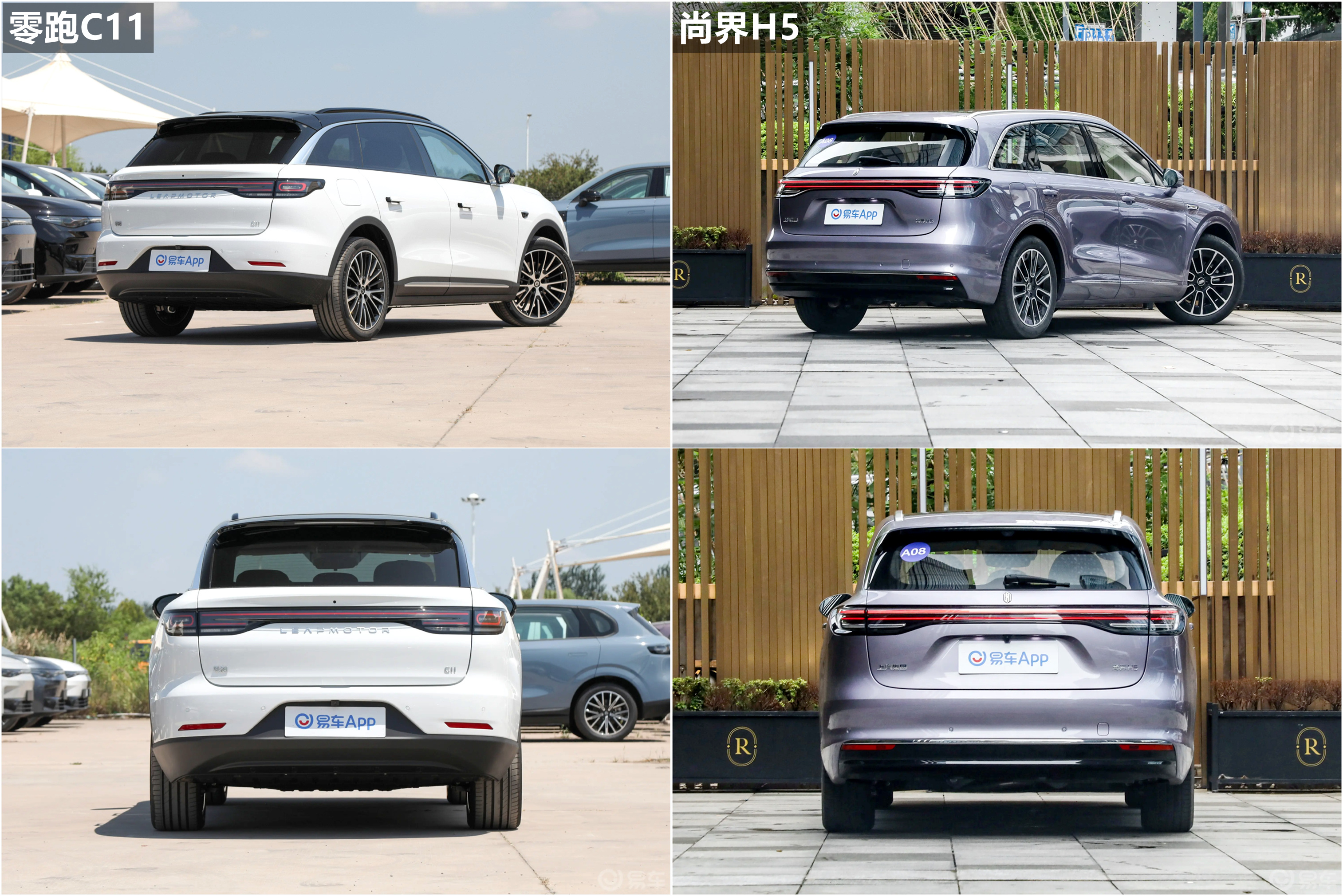 两款车的外观都很时尚,表现都不错,但零跑C11的车身姿态更协调,尤其是车头有贯穿灯组,更好看。