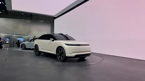 现场不仅展示了AFEELA 1,同时还展示了全新纯电SUV AFEELA Prototype 2026概念车,据实车照片可见,新车同样采用家族式设计语言,整体前脸造型与AFEELA 1保持高度一致,只不过由于SUV车型的设定,整体车头更为厚重。