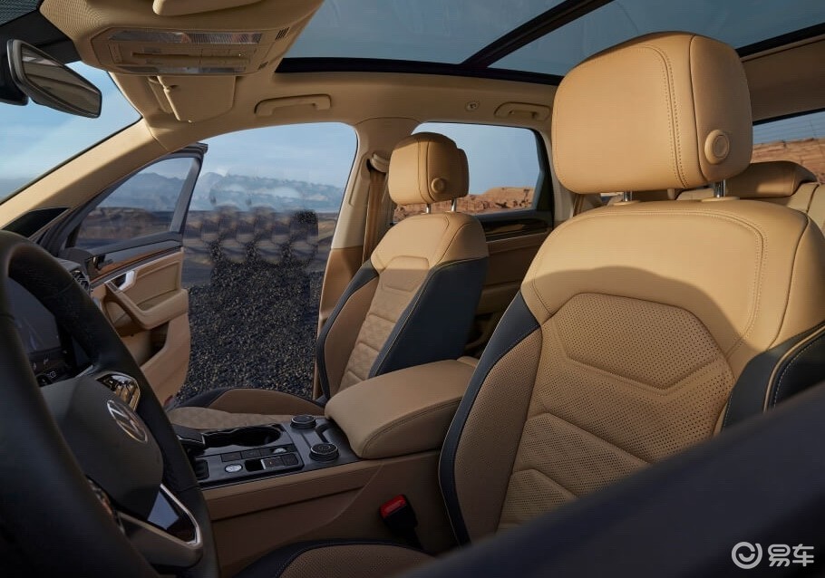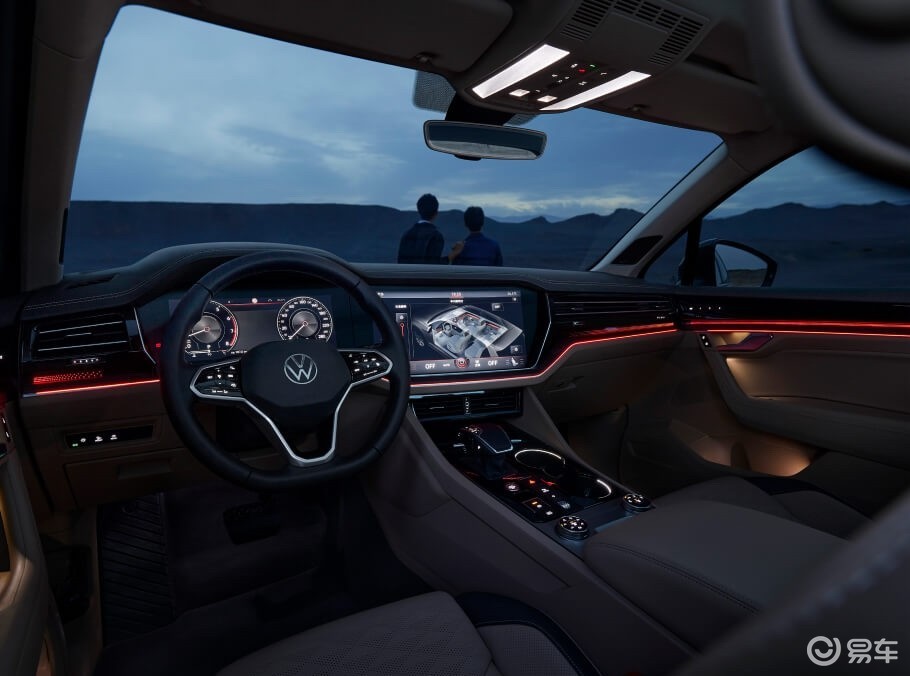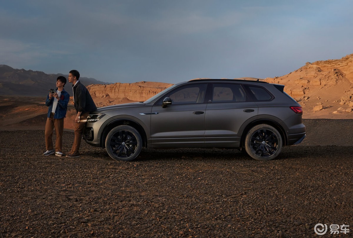 外观上,新款途锐换装R-Line黑化套件,熏黑蜂窝格栅、贯穿式LED灯带搭配发光VW车标,21英寸花瓣式轮毂、黑化车顶行李架与车窗饰条,让整车运动感大幅提升,车身长度也因外观调整增至4913mm,视觉上更为修长。