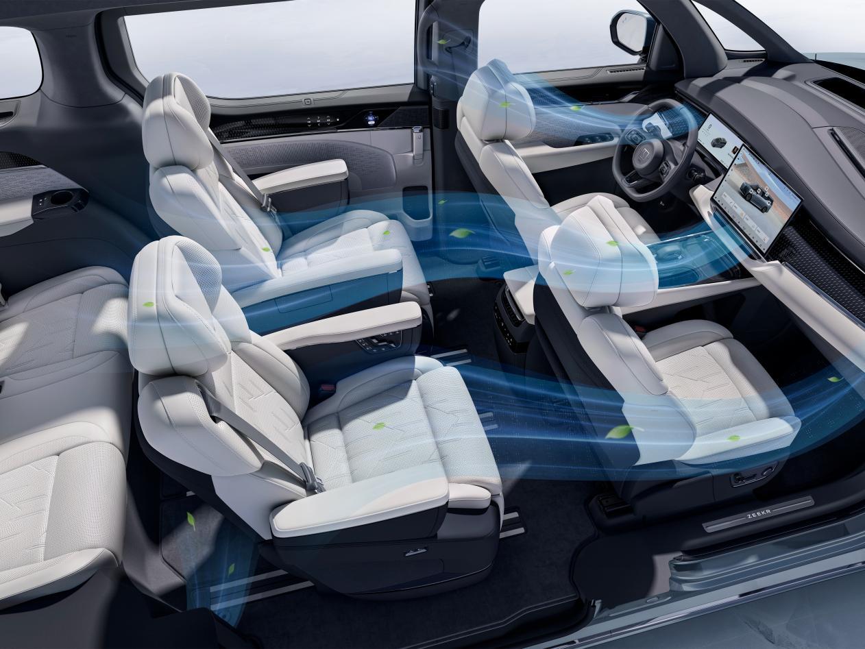 除此之外,极氪009还有一个对于家用来说非常重要的加分项----座舱健康。整车通过了中汽中心CATARC“儿童绿色座舱”认证和中环联合认证中心CES“生态纺织品”认证,是全球唯一通过双认证的环保座舱,意味着它的车内空气质量、材料安全和电磁辐射安全都满足了母婴级标准,让一家人都能坐的踏实、坐得安心。