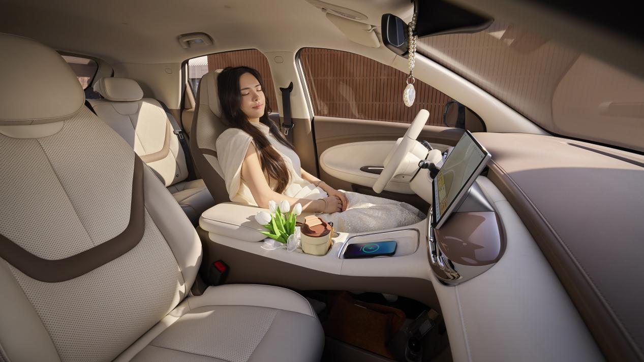 当然除了空间变大,针对座椅的舒适性,这次缤果Pro也做了升级,配备云柔环抱座椅,并搭载了航空级U形独立头枕,对头部、颈部的承托更到位。并且座椅还针对坐姿曲线做了优化,更贴合人体身形,前排座椅接触面积超146000mm²,包裹感柔和不生硬。对于日常通勤单程半小时、周末短途自驾的用户来说,长时间乘坐也不会有明显的疲惫感,可以说把代步车的基础舒适性又提升了一个层次。