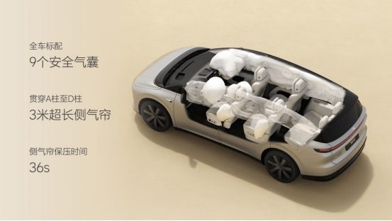 在整车安全方面,理想i8采用首创的前舱多路径力传递设计,具备三条纵向力传递路径,提升正面碰撞能量分散能力,前舱内布置11个环形吸能结构,有效吸收并化解碰撞能量,在实现理想i8独特短车头低风阻造型的同时,仍然能够保证整车安全,大幅提升乘员舱的结构完整性。理想i8全系标配9个安全气囊,并配备SUV车型中最长的侧气帘,为全车乘员提供全方位防护。理想i8以最高安全标准为开发准则,在全面满足中汽研、中保研等国家标准基础上,同步执行更严苛的理想汽车企业安全标准,在各类极限碰撞工况下均能全方位守护每一位家人的安全。