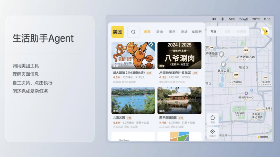 理想同学智能体通过处理复杂任务的能力,真正实现了物理世界与数字世界的连接。基于此次理想汽车与美团在点餐场景上的合作,理想同学智能体可以自主调用美团工具,理解页面和按钮,帮助用户完成点餐和导航到店取餐的需求。此外,理想同学智能体能够调用更多支付宝能力,同时调用车外摄像头和解决复杂任务的能力,自动识别判断停车场内的缴费二维码、根据记忆信息自动填写车牌号、自动选择优惠券,从而快速完成缴费,通过数字世界的能力为用户带来物理世界智能便捷的体验。