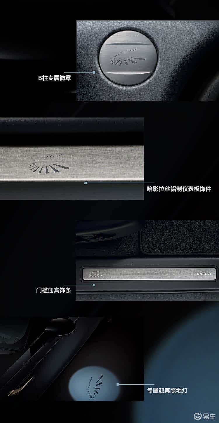 内饰延续家族化布局,提供四幅式多功能方向盘、全液晶仪表盘、内嵌式中控屏以及电子挡把。双辉版仪表板采用暗影拉丝铝饰板。山风版和双辉版均加入了专属标志以及迎宾灯。全系标配胎压显示、双腔空气悬架、自动驻车、上坡辅助、前后驻车雷达、全景影像、L2级别辅助驾驶、电动感应尾门、自动LED大灯、自动雨刷、前排座椅电动调节/加热、第二排座椅电动调节、英国之宝音响、自动空调及后排独立空调。