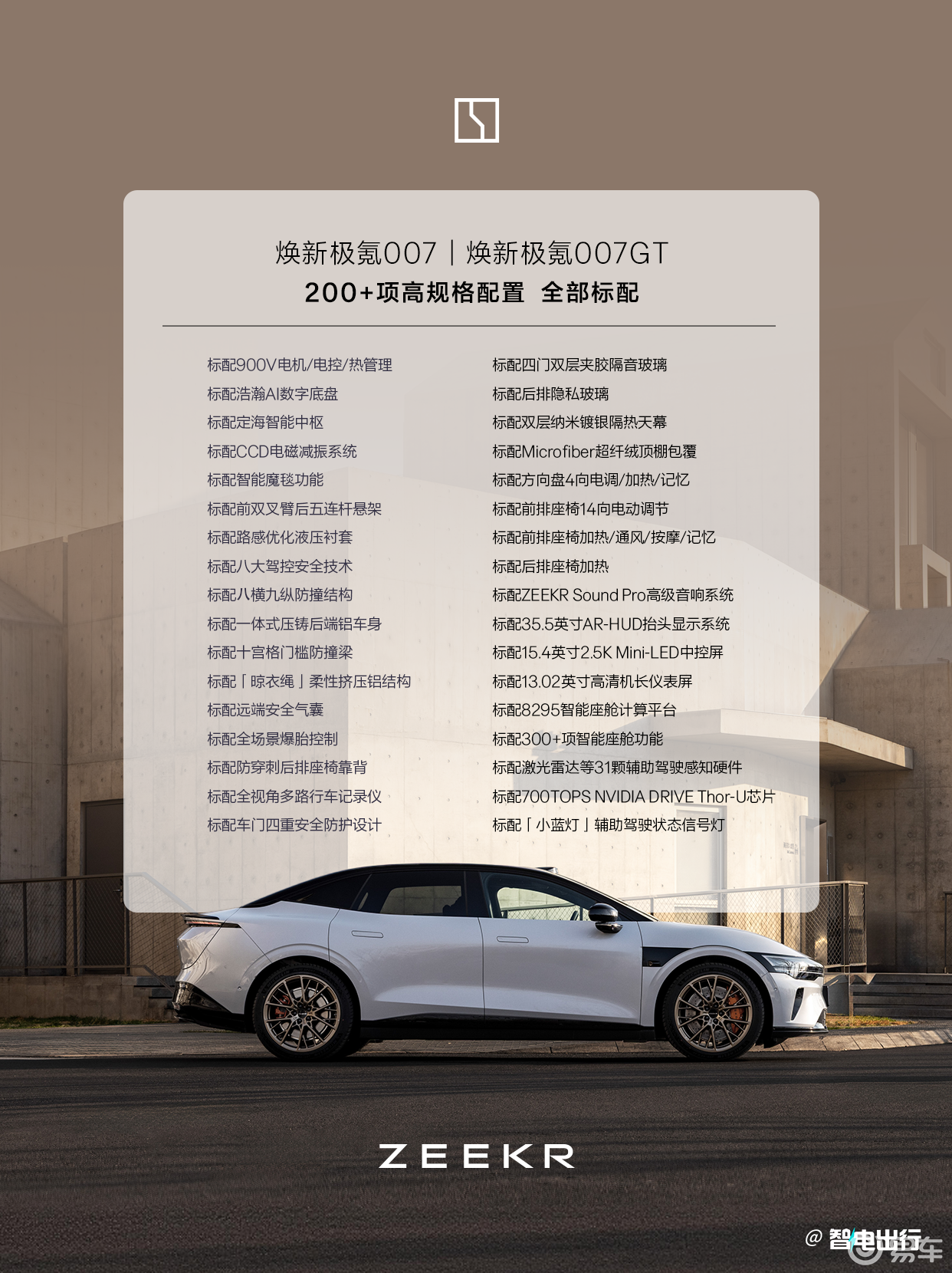 4月10日,焕新极氪007、007GT正式上市,同步推出极氪001五周年纪念版。其中,焕新007系列全面降价+增配。