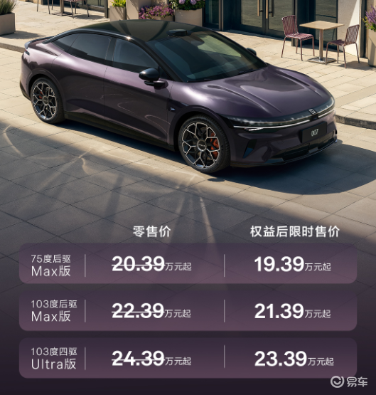 新款007、007GT官方指导价20.39-24.39万元,限时权益价19.39-23.39万元。对比老款,007入门版降0.6万,四驱版降1.6万;007GT入门微涨0.1万,顶配降0.9万,整体入手门槛更低。